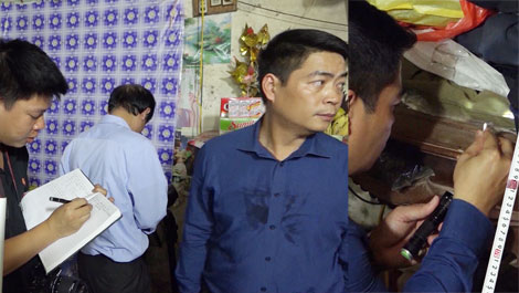 | Cán bộ Phòng Kỹ thuật hình sự Công an tỉnh Hải Dương khám nghiệm hiện trường một vụ trọng án để thu thập dấu vết. |