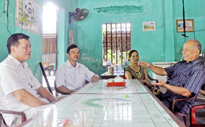 | Ông Lý Tài Thông (ngoài cùng bên phải) vận động người dân trong xã tham gia phong trào quần chúng bảo vệ an ninh Tổ quốc. |