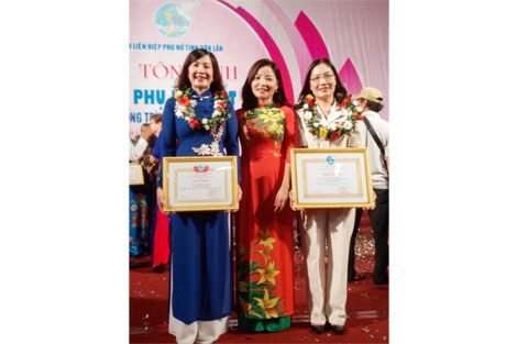 | Đại tá Nghiêm Thanh Thủy (ngoài cùng bên phải) vinh dự nhận bằng khen của Hội Liên hiệp Phụ nữ Việt Nam. |