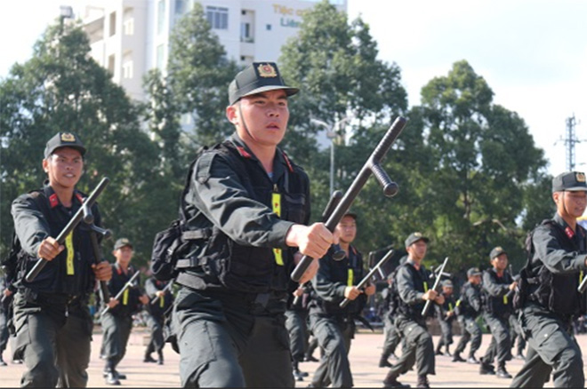 | Chiến sĩ Công an tỉnh Đắk Lắk tập luyện trên thao trường. |