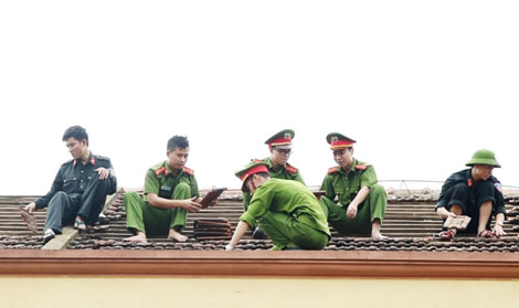 - Lực lượng Công an giúp dân khắc phục hậu quả bão số 10