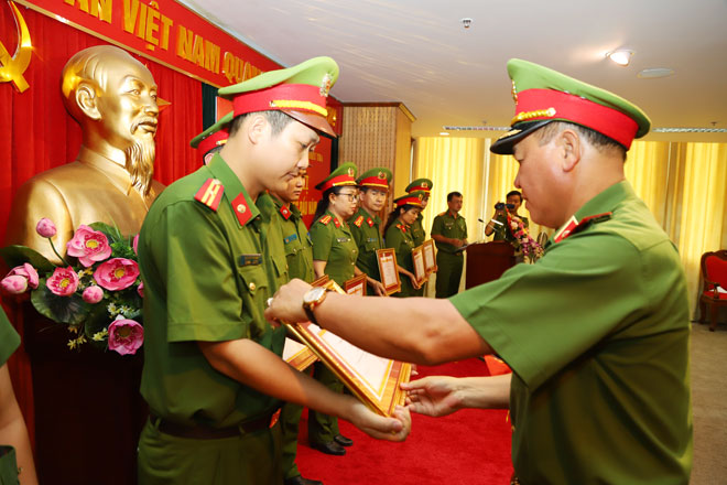 | Trung tướng Trần Văn Vệ - trao thưởng cho các tập thể, cá nhân có thành tích xuất sắc. |