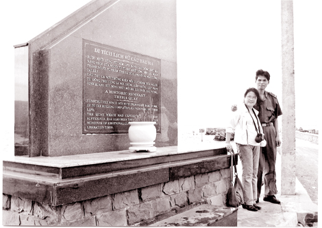 | Nhà văn Nguyễn Thị Ngọc Hà với một người lính trẻ nơi Côn Đảo trong chuyến đi đầy kỷ niệm. |