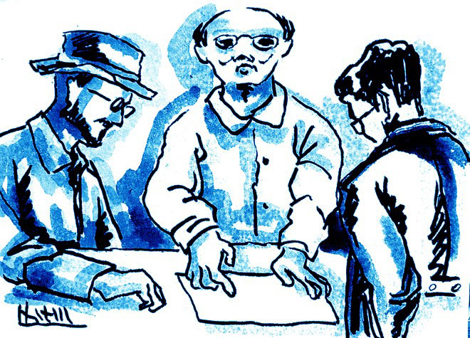 "Này, ông nói thế tôi có thể tin được không? Ông là một thám tử. Ông có mưu đồ trên một tờ di chúc là một chuyện rất dễ dàng. Ông có phải là người rất chuyên nghiệp, phải không? Ông có thể đã sử dụng một cây bút phai màu để làm cho các chữ trên tờ di chúc mờ dần. Nhất định là như vậy, bút phai màu chỉ có thể làm phai màu của các chữ và không thể làm phai màu của con dấu".