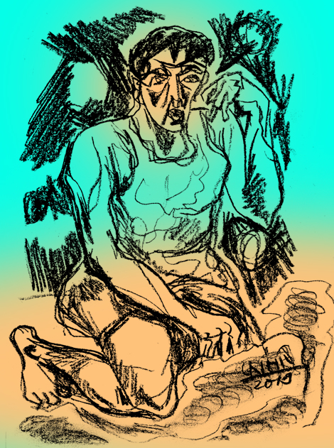 Bà già quảy gánh qua bãi cỏ cháy, ngồi lau khô hai khóe mắt bị cát làm ngoèn.