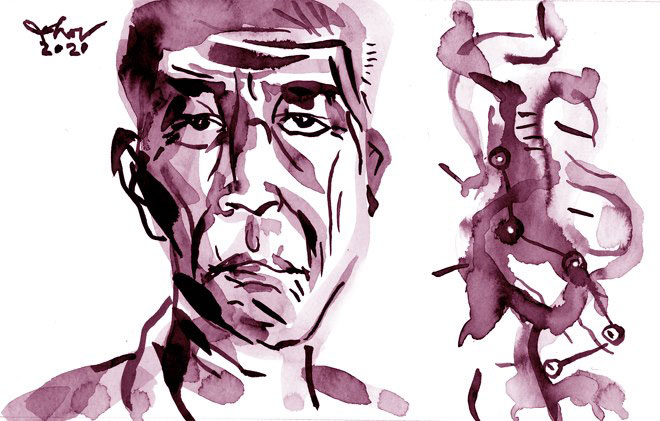 Xong rồi, lão thong thả nạp thuốc vào cái điếu cày làm bằng đoạn gốc tre ngà, rít một hơi, đôi mắt già nua nhìn xa lắc xa lơ như thể đang nhìn thấy cảnh đời ở một cõi xa xăm nào, hoặc như đang nhớ lại một chuyện gì đó, buồn lắm...
