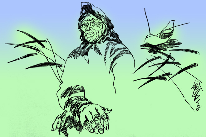 - Tôi vẫn nhớ như in, lần tôi về thăm mẹ (có ngờ đâu là lần cuối cùng)… Mẹ đón tôi từ ngoài cổng. Mẹ nắm tay tôi rất chặt. Chiều muộn hôm ấy mẹ nấu cho tôi món canh cua mùng tơi. Đấy là món mà tôi rất nhớ mỗi lúc xa nhà. Tôi bảo: "Con đi khắp nước này, nước khác, những bữa tiệc chiêu đãi khách quốc tế, chẳng có món nào ngon bằng món canh này của mẹ". Mẹ cười. Một nụ cười móm mém, lộ ra hai cầu lợi không còn một chiếc răng nào. Lúc ấy tôi mơ hồ cảm nhận thấy mẹ tôi đã thay đổi nhanh chóng. Dường như mẹ không được khỏe. Tôi nhìn gương mặt mẹ nhăn nheo, với hàng trăm nếp nhăn hằn ngang dọc. Đôi mắt đã mờ đục. Dường như che giấu bên trong một nỗi buồn, nỗi hoài tiếc một điều gì.