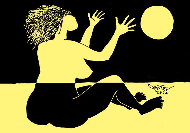 - Cô này điên mấy năm nay rồi ngày cũng như đêm lúc nào cũng ngửa mặt lên ngắm Trời.