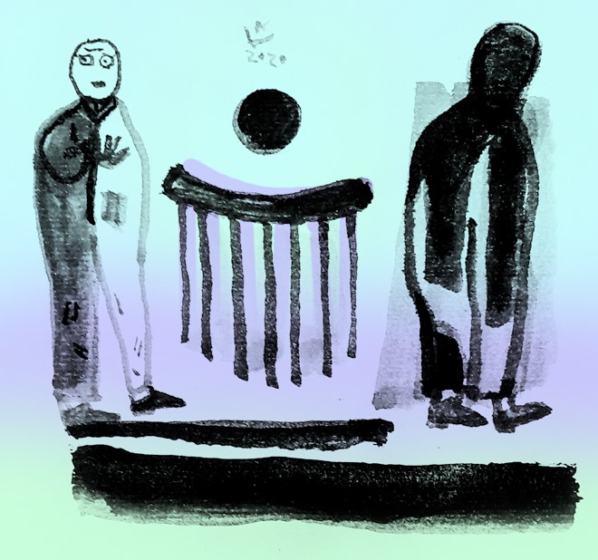 Khi khoảng cách giữa họ ngắn lại, công tố viên đột nhiên ghìm cương hai con ngựa kéo xe, mắt dán chặt vào người đối diện đang tiến đến. Đột nhiên người ấy rút một khẩu súng trường từ một bao da trên yên, rồi cầm nó bằng cánh tay phải.