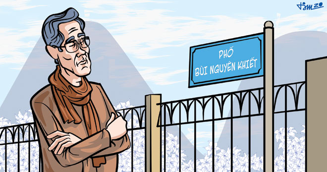 - Còn anh muốn đến phố Bùi Nguyên Khiết thì tôi có cái sơ đồ cho anh đây! Đây này, anh biết Đài truyền hình tỉnh, Bệnh viện tỉnh rồi chứ? Đó đó… anh nhìn bản vẽ này rồi theo đó mà đi. Thế anh quan hệ thế nào với liệt sĩ Bùi Nguyên Khiết? Bạn à? Hay chỉ là người dưng tò mò?