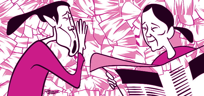 Nhưng đã không kịp rồi. Bà Chín tọt vào căn buồng bên trái nhà, đã thoăn thoắt đi ra với tờ báo trên tay: