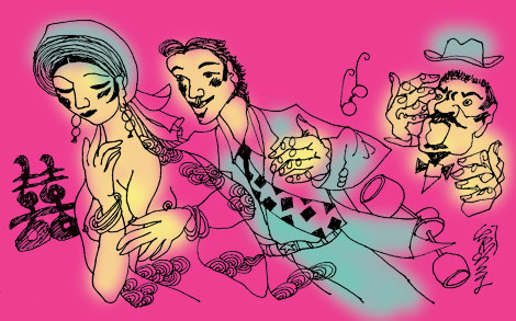 Cô dâu mặc áo dài đỏ, đội mũ Nam Phương Hoàng hậu đỏ, cúi đầu từ trong buồng đi ra. Chú rể Thành comple ca vát đứng ở cửa buồng đợi sẵn. Cô bẽn lẽn đi bên Thành chào mọi người. Các vị trong họ nhà trai giương mắt nhìn đánh giá, rồi gật gật đầu vừa như đáp lễ vừa như tỏ ý bằng lòng.