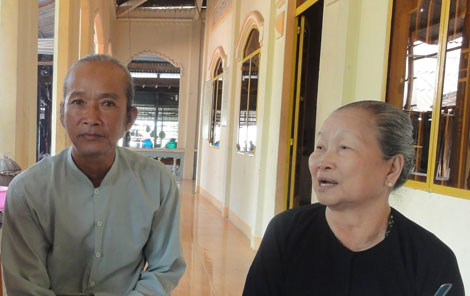 Bà Lê Thị Chua (bên phải) - Cháu nội dâu ông Ba Thới và ông Nguyễn Văn Khương - Cháu cố ông Ba Thới.