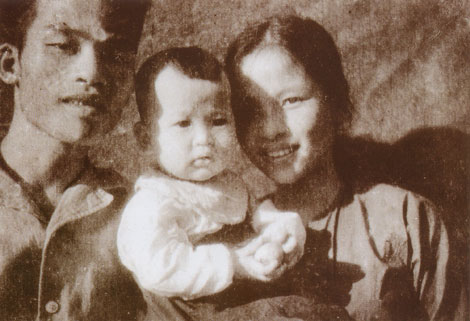 | Bức hình duy nhất Minh Vân chụp cùng bố Đào Phúc Lộc - mẹ Hoàng Minh Phụng tại chiến khu Việt Bắc, Đại Từ, Thái Nguyên. |