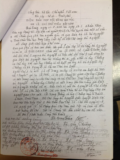 Sau rồi các cán bộ cũng nghĩ ra một cách, lấy xác nhận của những người có uy tín để tạo thêm sức nặng cho bộ hồ sơ này. Đó là giấy xác nhận của các ông Nguyễn Tài, bà Nghiêm và chính Thiếu tướng Minh.
