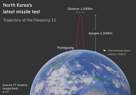 | Mô phỏng đường đi của Hwasong-15. |