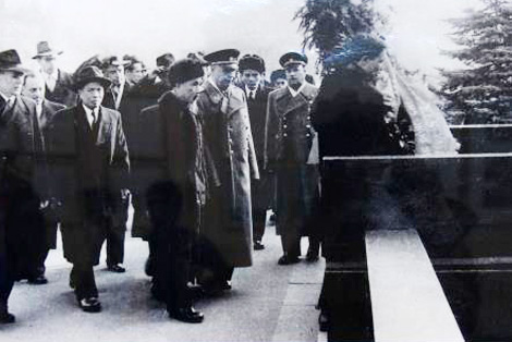 | Chủ tịch Hồ Chí Minh cùng Đoàn đại biểu Đảng và Chính phủ Việt Nam vào Lăng viếng lãnh tụ Lênin trong dịp Đoàn sang dự lễ kỷ niệm 40 năm Cách mạng tháng Mười Nga vào năm 1957 |