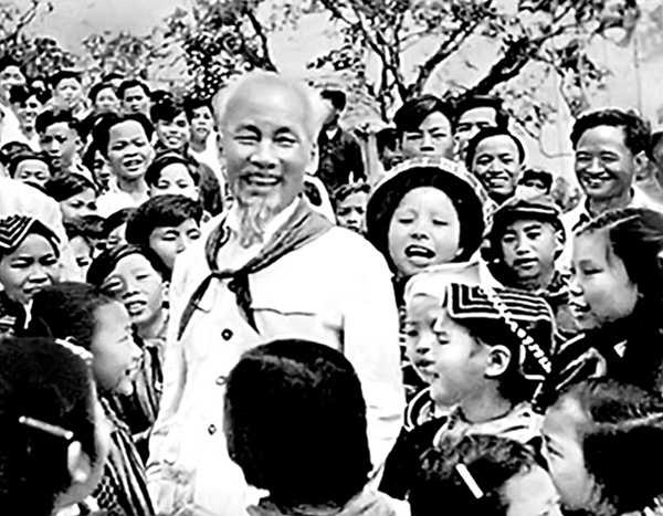 | Bác Hồ với thiếu nhi các dân tộc Việt Bắc, 1960. Ảnh: Tư liệu. |