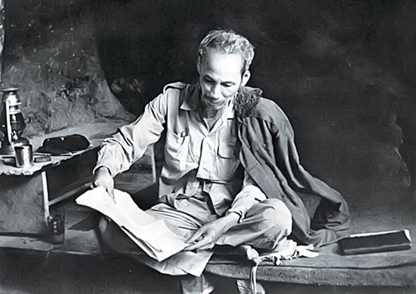 | Bác Hồ làm việc trong hang đá ở Việt Bắc, năm 1951. Ảnh: Tư liệu. |
