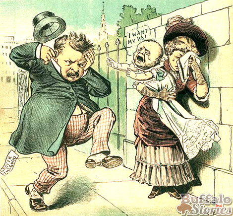 | Bức hí họa trên tờ Buffalo Evening Telegraph về ứng cử viên tổng thống Grover Cleveland. |