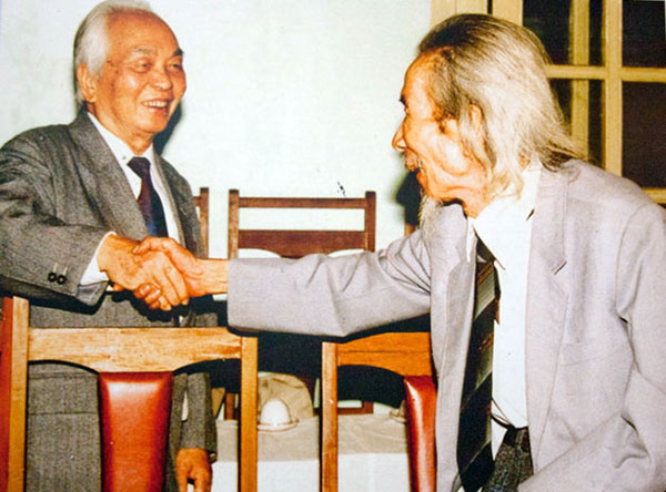 | Nhạc sĩ Văn Cao (phải) và Đại tướng Võ Nguyên Giáp. Ảnh tư liệu. |