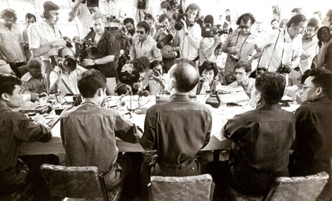 Cuộc họp báo ngày 12/1/1975 tại trại Đa-vít về sự kiện giải phóng thị xã Phước Long. |