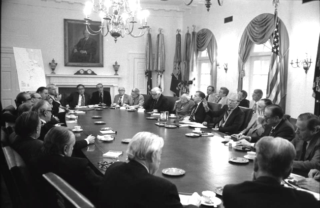 Tổng thống Ford chủ trì phiên họp Hội đồng An ninh quốc gia về vụ tàu SS Mayaguez. |