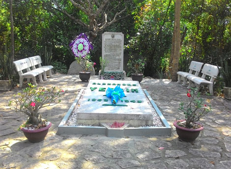| Phần mộ Yersin trên ngọn đồi lộng gió ở Suối Dầu, huyện Cam Lâm, tỉnh Khánh Hòa. |