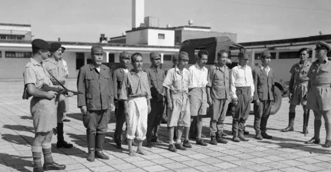 Tội phạm chiến tranh Nhật Bản bị dẫn giải về trại Stanley, Hong Kong năm 1945.