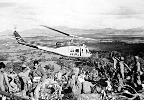 | Trực thăng Bell 205 của AA tiếp tế vũ khí cho đội quân Vàng Pao ở Lào. |