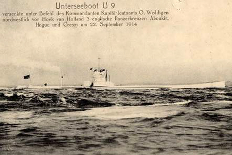 Khi đó, chiếc tàu ngầm U9 của Đức không chỉ tấn công và đánh chìm 3 tuần dương hạm bọc thép hạng nặng Aboukir, Hogue và Cressy của Anh mà còn đặt dấu hỏi đầy hoài nghi về sự thống trị của nước Anh từ trước tới giờ trên mặt biển.