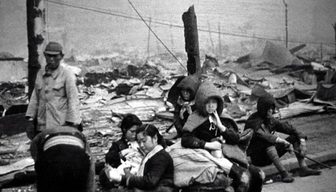 | Người dân Nhật Bản mất nhà cửa sau chiến dịch Meetinghouse. |