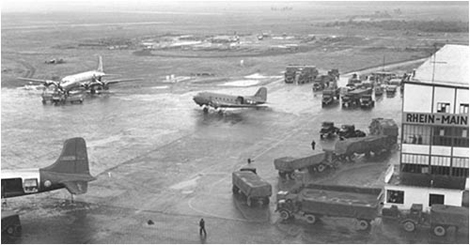 | Hoạt động xếp, chuyển hàng tại sân bay quân sự Rhein-Main. |