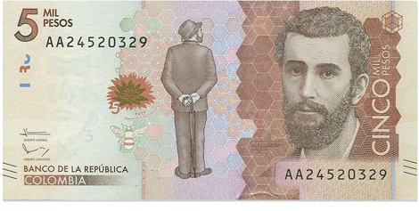 Trong số những đồng tiền mới của Colombia vừa được lưu thông năm ngoái, có tờ giấy bạc mệnh giá 5.000 pesos mà nhân vật chính của nó là nhà thơ José Asunción Salustiano Facundo Silva Gómez (1865-1896).