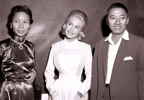 | Trung tá Phạm Ngọc Thảo cùng phu nhân chụp ảnh với diễn viên Sandra Dee tại Mỹ năm 1962 . |