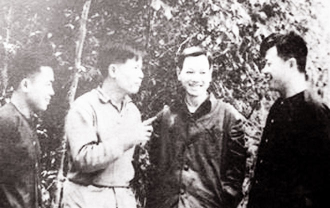 Từ trái sang, các tướng lĩnh: Văn Phác, Nguyễn Chí Thanh, Trần Văn Trà, Hoàng cầm của Bộ Chỉ huy Miền trong chiến khu miền Đông thời chống Mỹ.