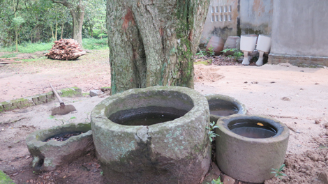 | Hiện vật cối đá giã gạo, cối đá mài gươm được cho là của Nghĩa quân Đề Thám tại chùa Kem. |