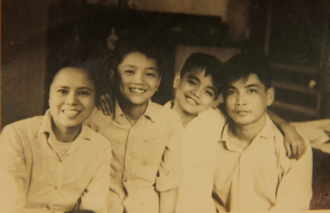 | Nhà thơ Việt Phương cùng vợ và các con. |