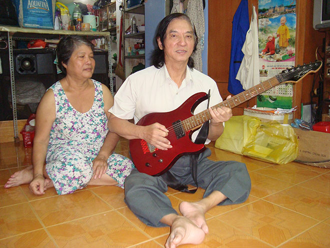 Trong căn nhà cấp 4 ngổn ngang đồ đạc cũ kỹ trên đường Pasteur (quận 1, TP Hồ Chí Minh), ngồi xoa bóp chân cho chồng, bà Lê Thị Thanh kể: "Hồi đó, ổng dạy đàn cho con của bà chủ chỗ tôi làm thợ hớt tóc. Sáng thấy ổng đi xe lăn thui thủi đến, chiều thui thủi về cũng thấy tội. Mấy anh con trai tán tỉnh tôi, nhìn họ có vẻ hào hoa, phong nhã vậy chứ hở tí là nói tục chửi thề. Cho nên tôi thương anh chàng dạy đàn tật nguyền hiền lành, ít nói này khi nào không biết".