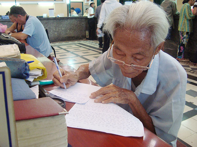 Ông kể, ngày đó có 7 người làm công việc này. Nhưng rồi sinh lão bệnh tử, đồng nghiệp của ông dần ra đi. Bây giờ, ở bưu điện chỉ còn mình ông viết thư thuê chuyên nghiệp và trở thành một nét văn hóa đặc sắc của đất Sài Thành. Thấm thoắt đã gần 70 năm ông gắn bó với bưu điện.