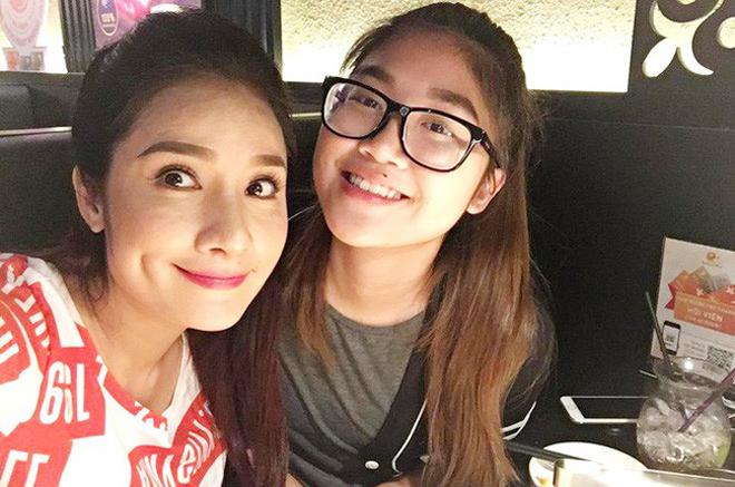 | Diễn viên Cát Tường và con gái. |