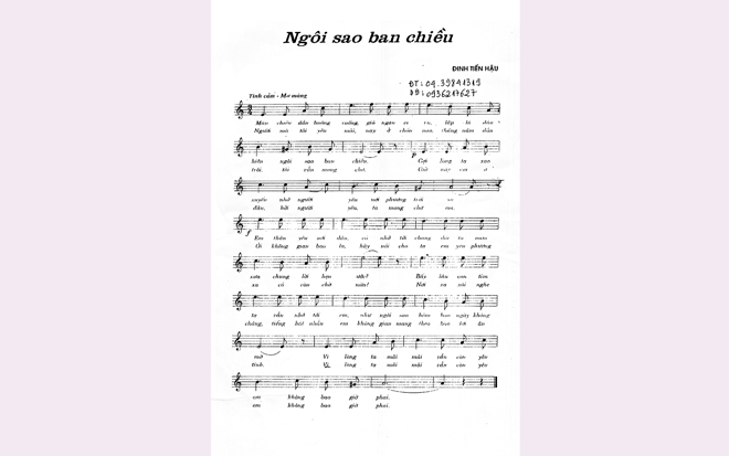 Tôi im lặng để như được cùng trở về dòng hồi ức. Tòa chung cư UDIC hướng về phía Đông. Mùa này bầu trời Hà Nội sương mù giăng phủ. Sông Hồng còn kia, tựa như dải khăn choàng thiếu nữ lả lơi buông xuôi dòng ra biển. Nhạc sĩ Đinh Tiến Hậu vừa "khoe" rằng "tháng 4 mình đi dự trại sáng tác ở Nha Trang" thì bỗng "nỗi buồn cố hữu" lại trở về trên gương mặt ông. Ông chia sẻ "Người ta viết cả trăm bài hát vậy mà mình chỉ có 10 bài gọi là". Tôi nhìn thẳng vào mắt ông và nói "Bầu trời âm nhạc Việt Nam đã được bác "dâng" lên một "Ngôi sao ban chiều" là quá đủ rồi".