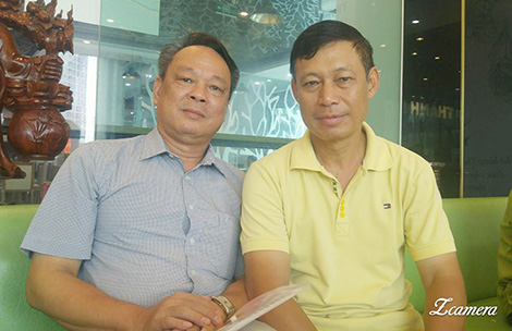| Tác giả bài viết (bên trái) và nghệ sĩ Tiến Hợi. |