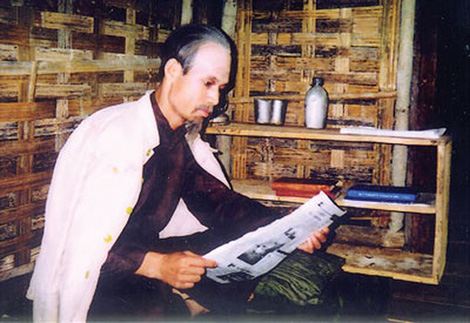 | Nghệ sĩ Tiến Hợi vào vai Bác Hồ ngày ở Việt Bắc. |