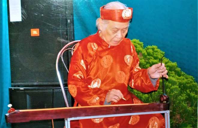 | Nghệ nhân Ưu tú Ngô Văn Đảm sung sức ở tuổi 92. |