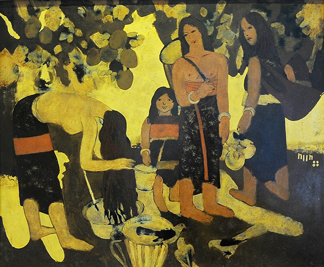 Trong bản tự bạch ông tâm sự rằng: "Tranh sơn mài thời gian càng lâu càng mới" như nước thời gian gột rửa hết tạp chất, bụi trần để lại những mầu vàng son lộng lẫy, sâu thẳm diệu kì. Lấy cảm hững từ câu thơ của nhà thơ "Thôn ca" Đoàn văn Cừ trong bài "Chợ Tết" nổi tiếng thời thơ mới: