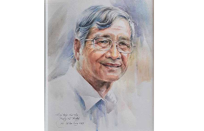 | Nhà thơ Hoàng Vũ Thuật - tranh của họa sĩ Lê Sa Long. |