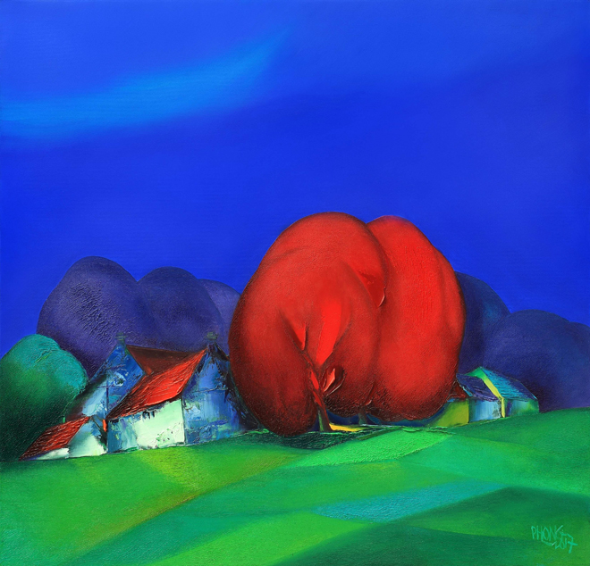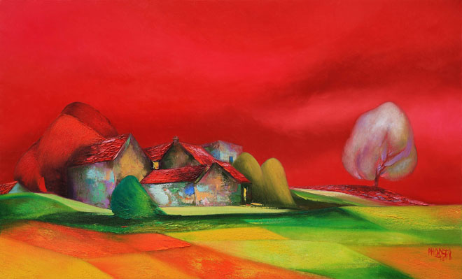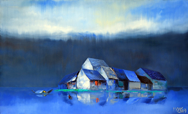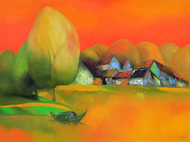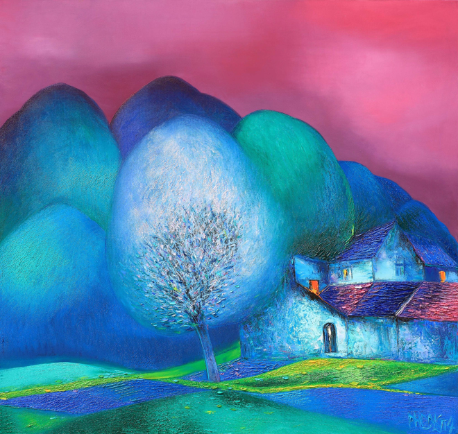 - Trong cuốn sách của anh, nhà thơ Nguyễn Quang Thiều chia sẻ: "Nghệ thuật thật kỳ diệu, không vẽ về nước mắt mà ta thấy nước mắt, không vẽ về nụ cười mà ta thấy nụ cười"… Vậy tranh của anh hầu như không vẽ về con người nhưng ta thấy bóng dáng con người ở phía sau những ngôi nhà đẹp, khung cảnh đẹp, chắc chắn phần lớn họ mang những gương mặt của hạnh phúc. Người nghệ sĩ, mà cụ thể riêng với hội họa có bắt buộc phải đối diện với hiện thực cuộc sống trong tác phẩm của anh ta không? Anh đã đối diện với điều đó như thế nào?