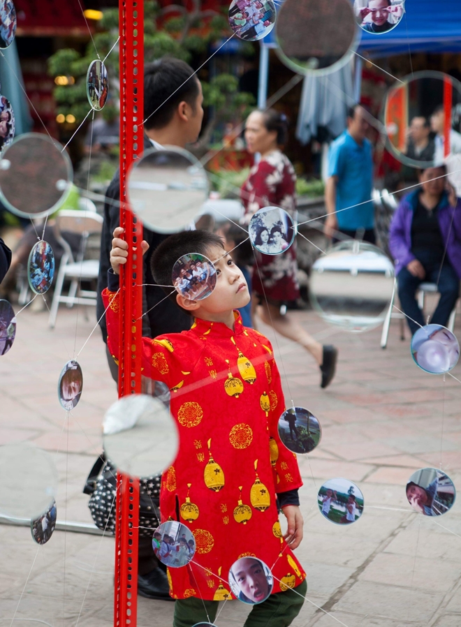 - Trở lại với hai tác phẩm nghệ thuật sắp đặt vào Rằm tháng Giêng 2019 ở Văn Miếu - Quốc Tử Giám có tên là "Điều còn thiếu?", ý niệm và những giới hạn thông qua tác phẩm của anh rất hay. Những chiếc gương treo trong không gian, ở đó có những gương mặt thân quen và xa lạ, ở đó có thể là tấm gương trong để bạn và tôi soi nhận ra gương mặt của mình. Doãn Hoàng Kiên muốn gửi gắm điều gì ở hai tác phẩm nghệ thuật sắp đặt này?