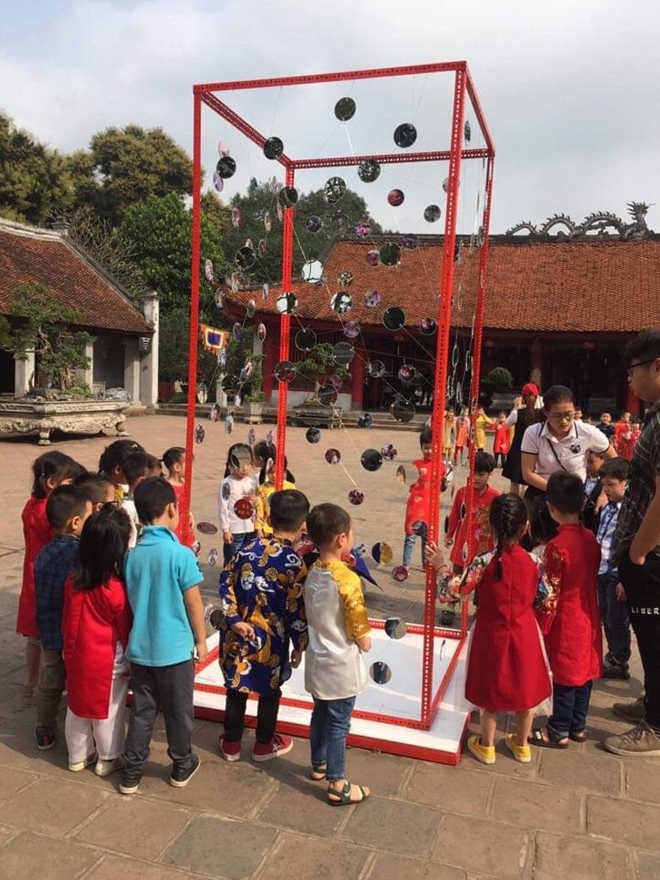 Nghệ sĩ Doãn Hoàng Kiên bên tác phẩm nghệ thuật sắp đặt của mình tại Văn Miếu - Quốc Tử Giám 2019.   Ảnh: Tô Chiêm